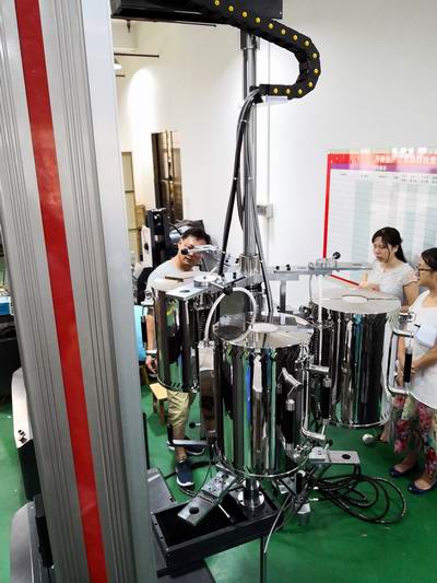 2018年8月2日,來自重慶金世利航空材料有限公司的張主任等一行三人蒞臨珠海,對前期訂購的九臺試驗機設備進行了現(xiàn)場驗收。